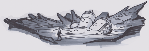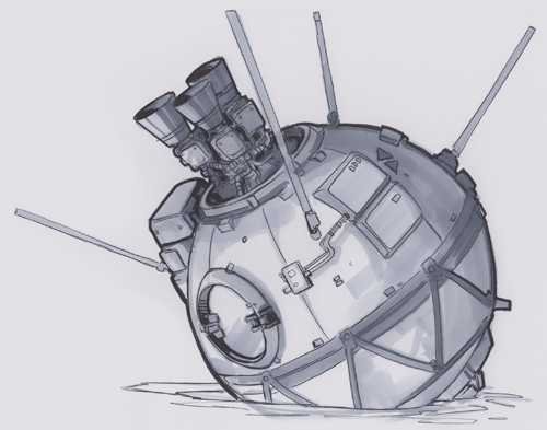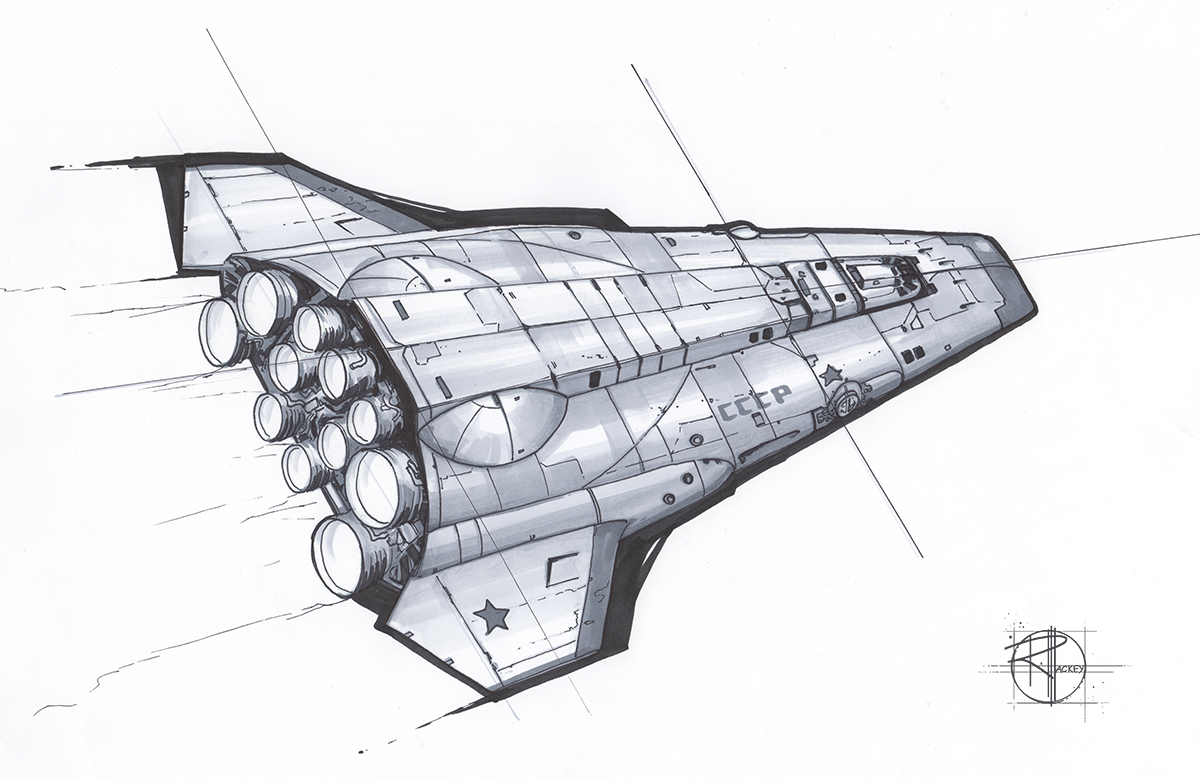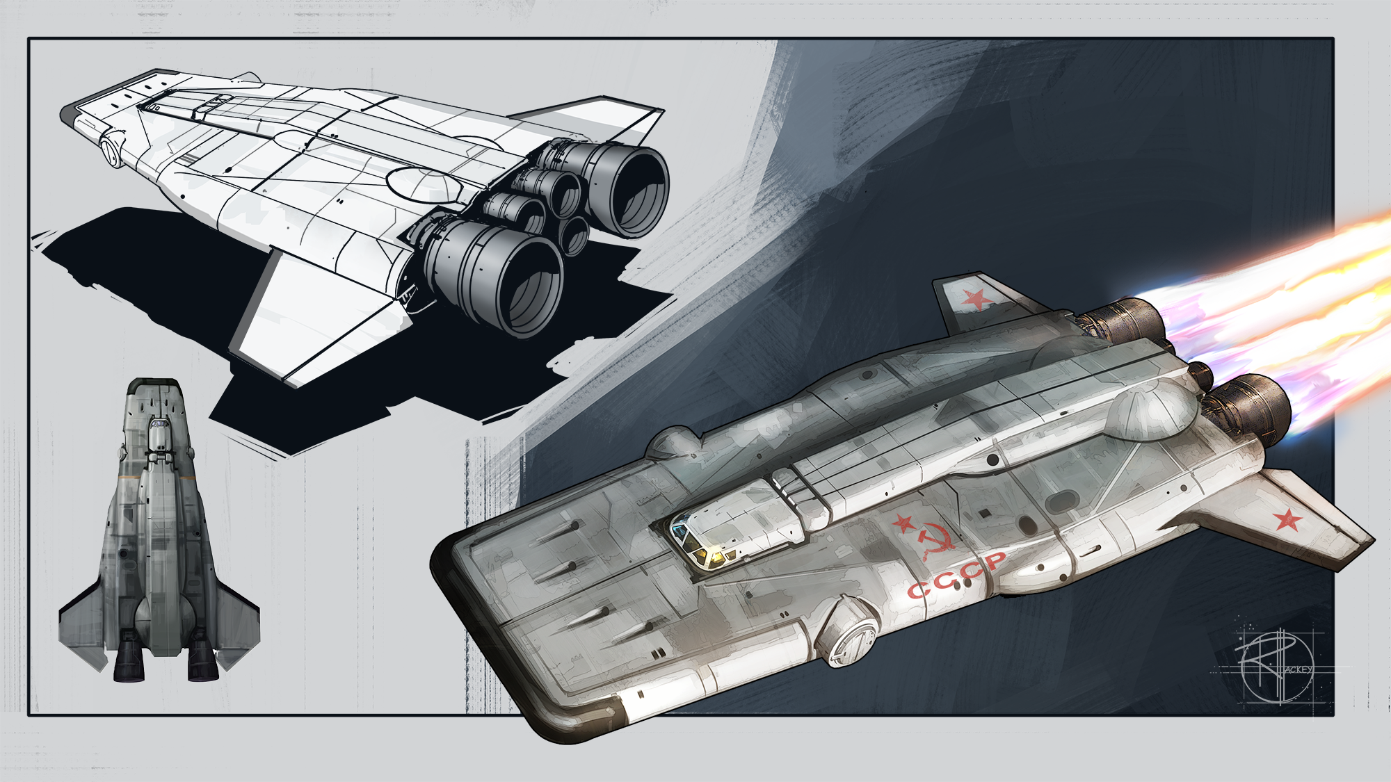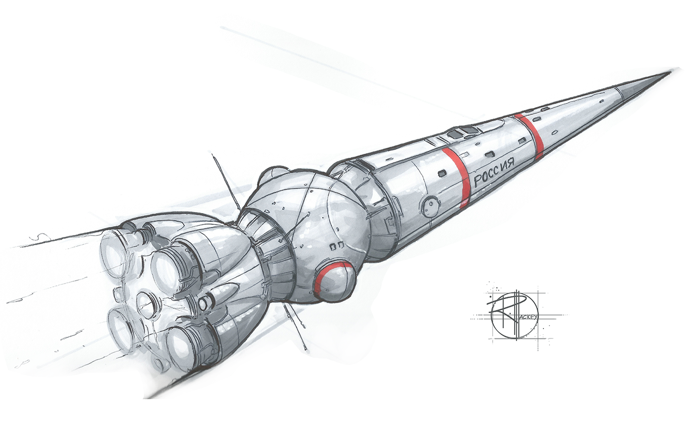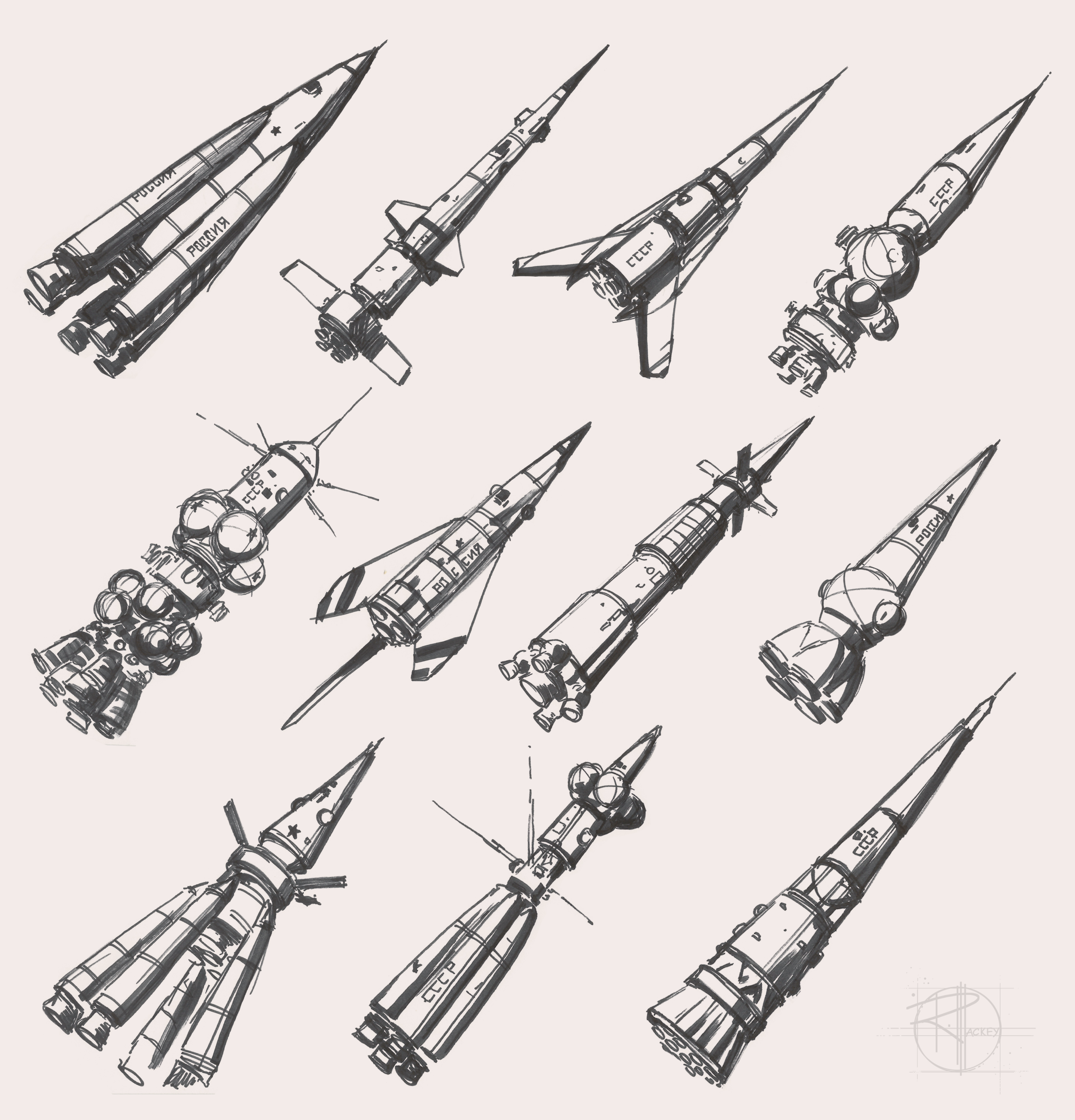 A vehicle in a story must serve multiple purposes. It must look good, of course. But it should also fit the function of story moments, as well as be easily identifiable. These are some of the initial sketches for Soviet and American space craft.