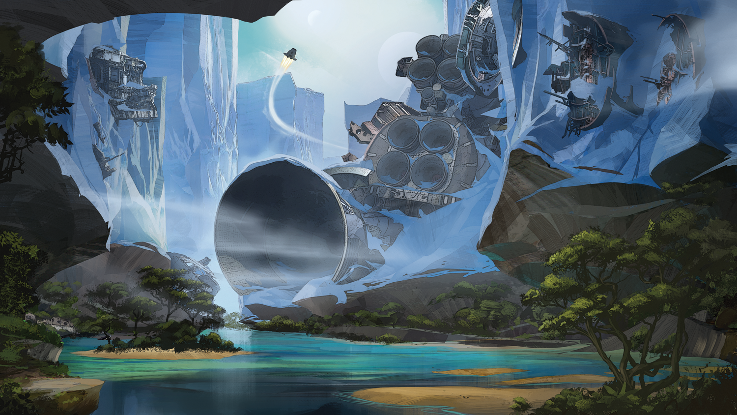 The first planet Eyva will venture to is a strange frigid ice world. The world is constantly venting and accumulating it's own gaseous clouds, creating a beautiful site from space. The surface is full of just as much wonder. Ice dominates the planet, but there is a layer of tropical heat at the surface.